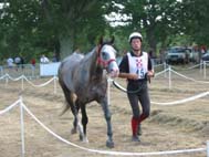 qualité du sol, tout du moins en majeure partie. Le site d'accueil de tous les Vet gates, n'a bénéficié d'une Sono que pour l'arrivée, c'est dans le silence le plus total que se sont déroulés tous les controles.Je crois que depuis Montcuq 2002 c'est la première nationale à laquelle nous assistons où il n'y a pas d'animation. Le fait que plusieurs chevaux venus seulement pour se présenter à l'entraineur national se soient arrêtés volontairement au kilomètre 100 rendait la course un peu bizarre à suivre, enlevant le coté "compétition" qu'il y a sur toutes les autres nationales. Mais avant tout ce qui est de toute façon très regrettable c'est que cette épreuve , qui pourrait être une bonne course, n'était pas inscrite au calendrier 2003,( en tout cas pas à ma connaissance et pas à la connaissances de nombreux autres cavaliers), et sa localisation à 15 jours de Moulins engilbert , à 3 jours de Landivisiau,à 3 jours du championnat de France des jeunes et à 15 jours de Compiègne a certainement privé ces nationales qui étaient inscrites au calendrier , de plusieurs de leurs potentiels participants . De toute évidence , il y a une demande pour ce type de course plate (sur du bon terrain) car malgré son annonce tardive , la proximité des autres nationales et le manque d'information ( de très nombreux cavaliers n'étaient pas au courant de l'existence de cette course et auraient aimé s'y inscrire) les cavaliers avaient répondus présents. C'est un gros travail que d'organiser une