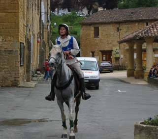 ![]() Farhoz de paute et Céline Scwartz repartent en 3ème postion du dernier Vet Gate, derrière Piacenza et Geruan parti en 2ème position. Geruan rattrape Piacenza , la dépasse, et entre seul sur l'hippodrome de Monpazier. |