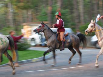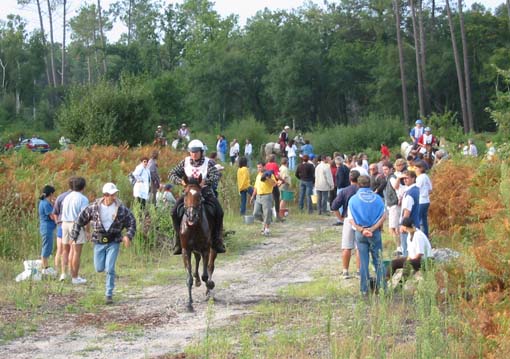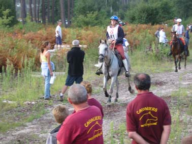 qualité du sol, tout du moins en majeure partie. Le site d'accueil de tous les Vet gates, n'a bénéficié d'une Sono que pour l'arrivée, c'est dans le silence le plus total que se sont déroulés tous les controles.Je crois que depuis Montcuq 2002 c'est la première nationale à laquelle nous assistons où il n'y a pas d'animation. Le fait que plusieurs chevaux venus seulement pour se présenter à l'entraineur national se soient arrêtés volontairement au kilomètre 100 rendait la course un peu bizarre à suivre, enlevant le coté "compétition" qu'il y a sur toutes les autres nationales. Mais avant tout ce qui est de toute façon très regrettable c'est que cette épreuve , qui pourrait être une bonne course, n'était pas inscrite au calendrier 2003,( en tout cas pas à ma connaissance et pas à la connaissances de nombreux autres cavaliers), et sa localisation à 15 jours de Moulins engilbert , à 3 jours de Landivisiau,à 3 jours du championnat de France des jeunes et à 15 jours de Compiègne a certainement privé ces nationales qui étaient inscrites au calendrier , de plusieurs de leurs potentiels participants . De toute évidence , il y a une demande pour ce type de course plate (sur du bon terrain) car malgré son annonce tardive , la proximité des autres nationales et le manque d'information ( de très nombreux cavaliers n'étaient pas au courant de l'existence de cette course et auraient aimé s'y inscrire) les cavaliers avaient répondus présents. C'est un gros travail que d'organiser une