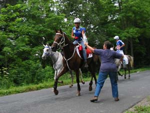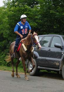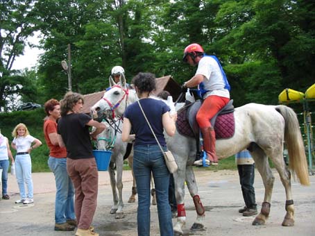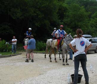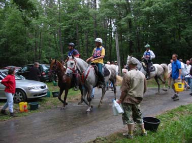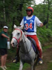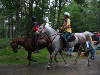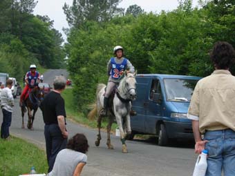 ![]() Geruan de lux et Anita David Becker arrivent les premiers au dernier Vet gate. Ils entrent les premiers dans l'aire de contrôle, mais malheureusement il s'avère être remonté au dessus de 64. C'est Piacenza qui une fois encore entre rapidement au vet gate et reprend ainsi l'avantage. |